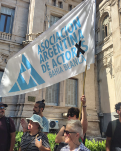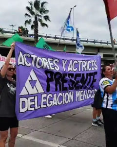 La Asociación Argentina de Actores y Actrices, integrante de la CTA-T, adhirió al paro general en todas las ramas del sector y se movilizó en todo el país en rechazo al proyecto de reforma laboral debatido en la Cámara de Diputados de la Nación.